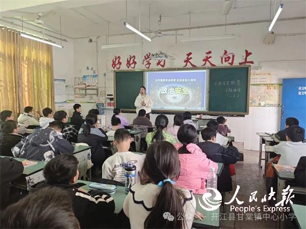 人民快报四川讯(王龙兵 通讯员:王莉)4月15日是全民国家安全教育日,为深入贯彻总体国家安全观,增强全校学生的国家安全意识和法治观念,让安全理念根植于心、外化于行,开江县甘棠镇中心小学组织开展了“4·15全民国家安全教育日”主题班会教育活动,以多样形式为同学们带来了一堂生动且深刻的安全教育课。