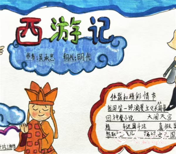 五彩斑斓,画纸上,彩笔勾勒出的名著人物与经典场景,灵动笔触跃然纸上,栩栩如生。