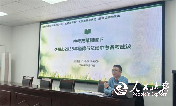 人民快报四川讯(王龙兵 通讯员:李科)为深化思政课教育教学改革,落实立德树人根本任务,传承 “孝善经开”地域文化精神,4月23日,达州东部经开区2026年“文轩教育杯”初中道德与法治优质课展评活动在麻柳中学成功举办。全区道德与法治骨干教师、参赛教师及区教育督导组成员齐聚一堂,共研思政教学、共话德育未来。