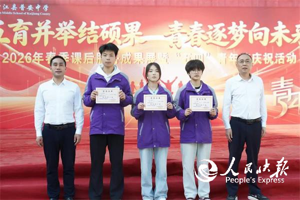 人民快报四川讯(王龙兵 通讯员:邓帅 白雪)4月30日,开江县普安中学新校区足球场上,少年身姿昂扬,青春气息浓厚。以“五育融合结硕果 青春逐梦向未来”为主题,2026年春课后服务成果展暨“五四”青年节庆祝活动在此启幕,三千余名师生齐聚一堂,共赴青春之约,纪念五四运动107周年,以庄重仪式致敬成长,用多元文艺展现芳华。