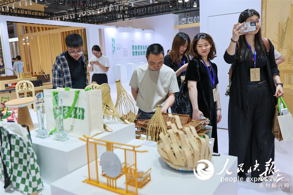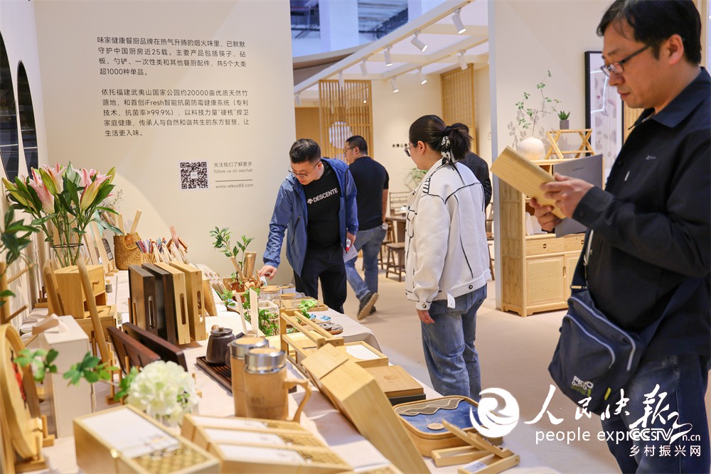 乡村振兴网福建讯(邱汝泉 摄影报道)5月13日,人们在第二届中国(武夷山)竹业博览会上选购竹产品。