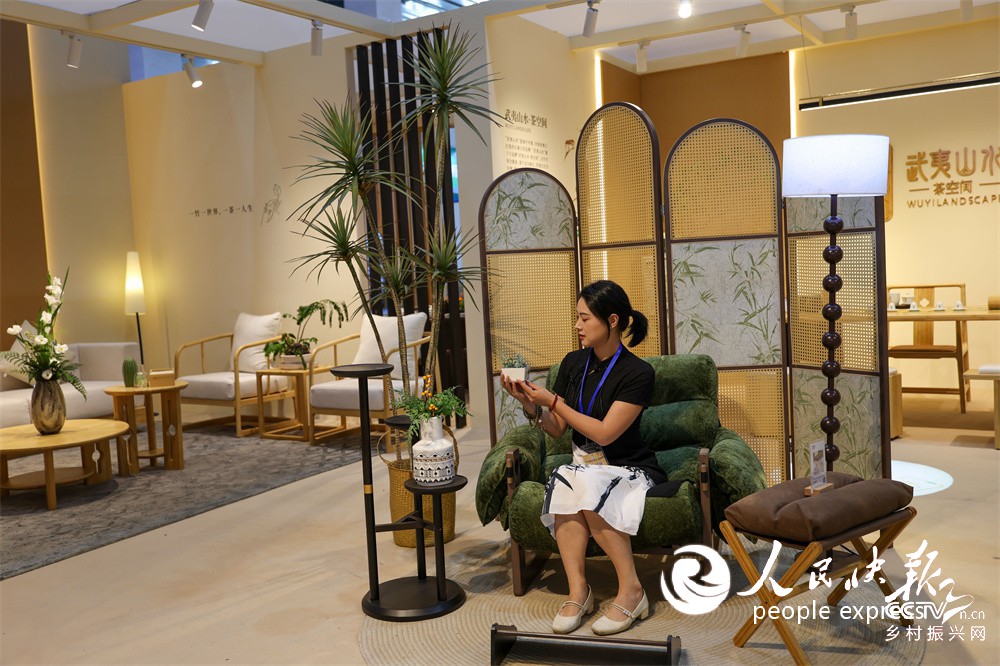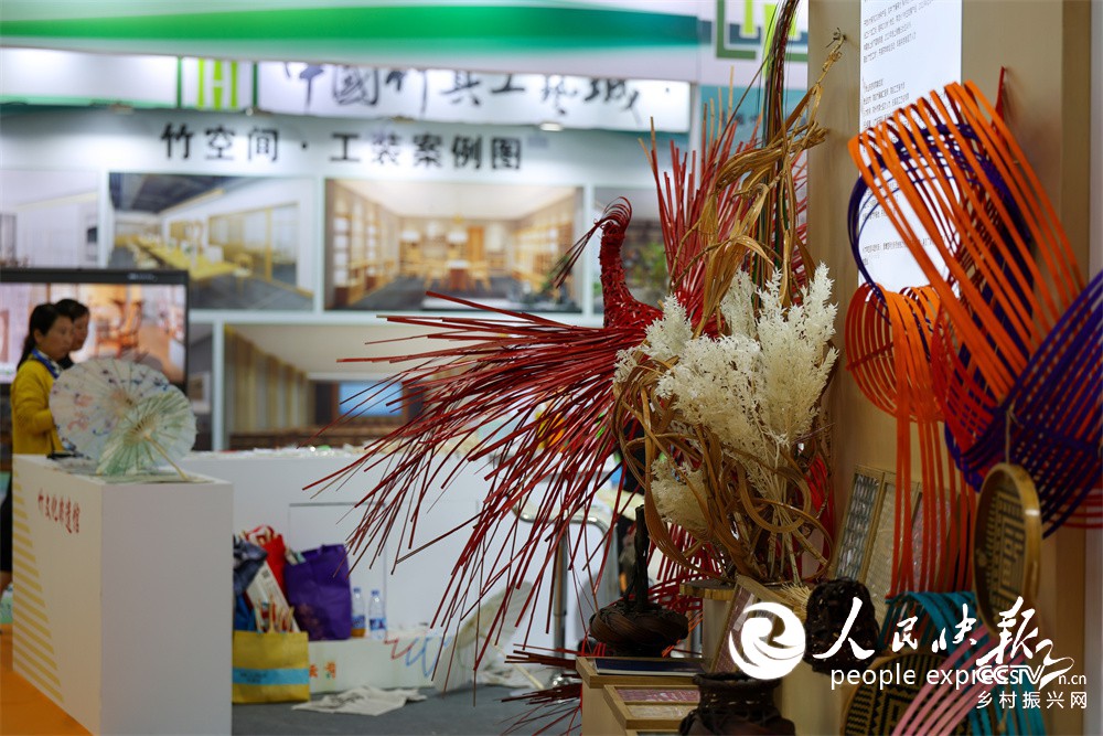 图九、5月13日,参展商在第二届中国(武夷山)竹业博览会上展示竹产品。