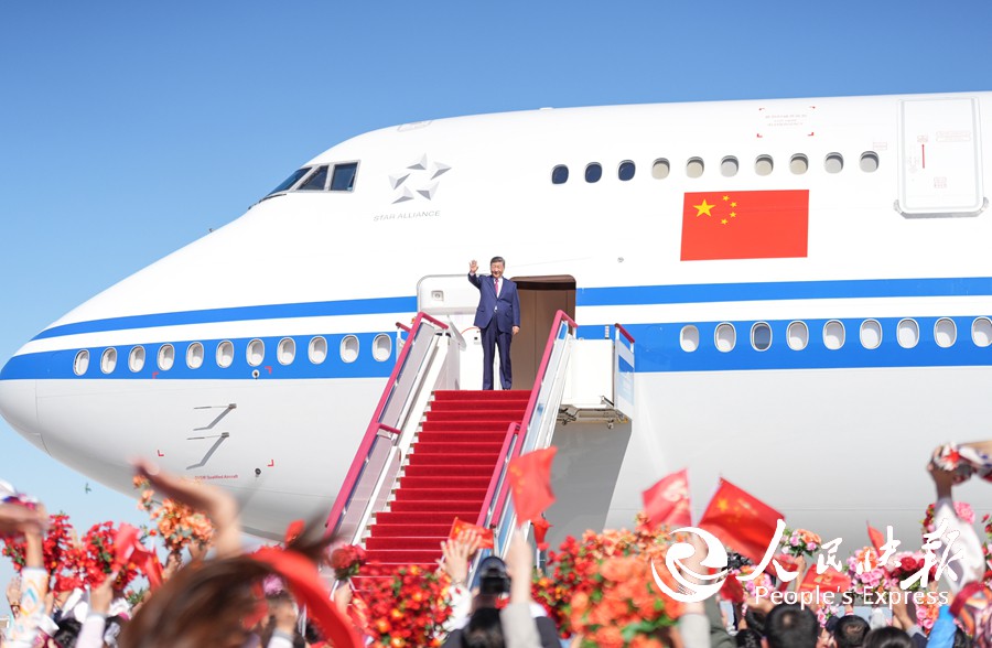 中共中央总书记、国家主席、中央军委主席习近平在乌鲁木齐出席新疆维吾尔自治区成立70周年庆祝活动后,9月25日中午乘专机返回北京。这是习近平在乌鲁木齐天山国际机场向前来欢送的各族群众挥手致意。 新华社记者 李琰 摄