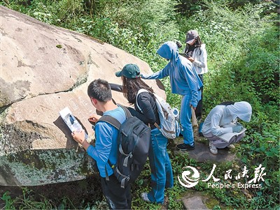 四川省巴中市通江县将全县划分成9个片区,片区成立普查组,对全县文物进行地毯式普查,探索“边普查边挂牌”“边普查边保护”工作方法,确保数据采集准确无误。图为普查小组开展文物登记等普查工作。程 聪摄(人民视觉)