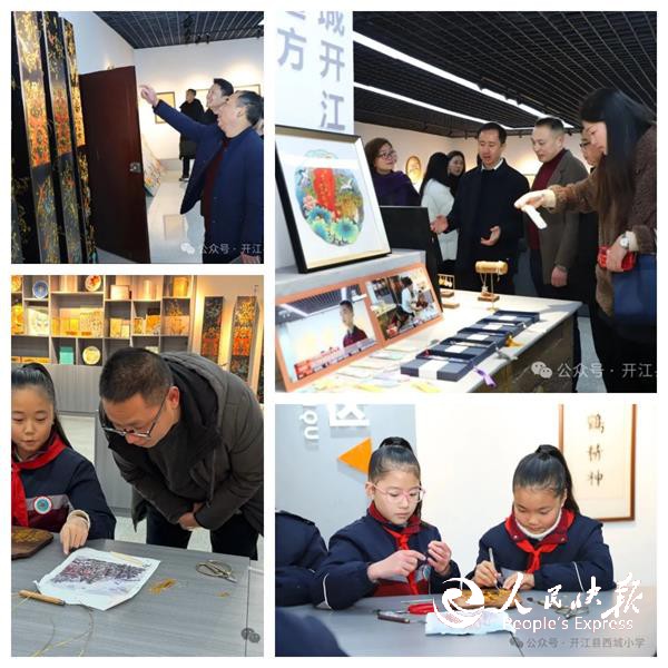 学员们一走进鼎新艺术坊,就被色彩艳丽,充满创意的作品深深吸引住。剪纸、书法、泥塑等作品,表现手法灵活多样。尤其是同学们现场展示创作的家乡风景掐丝画,想象力天马行空,工艺精美绝伦。鼎新艺术坊全方位展现了西小学子们的创新创意与实践能力,每一处细节都让学员们感受到孩子们在快乐中学习、在实践中成长的模样,真切地感受学校教育的温度。